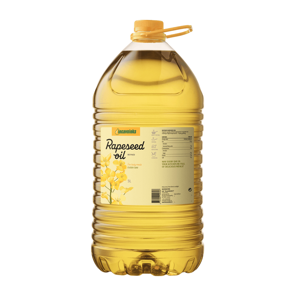 Highest quality refined rapeseed oil. Suitable for high temperature cooking – frying, grilling.