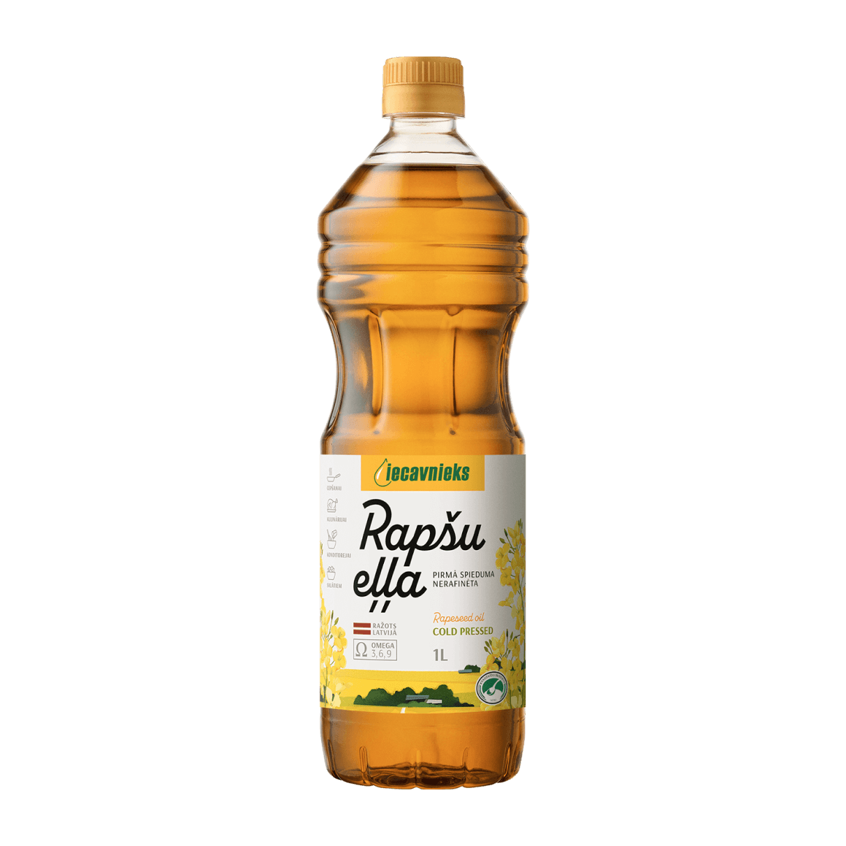 Augstākās kvalitātes, pirmā spieduma rapšu sēklu eļļa. Pankūkām, kartupelīšiem, brokastu olām un citiem ēdieniem piešķirs zeltainu krāsu un kraukšķīgumu. Izcila cepšanai un salātiem.